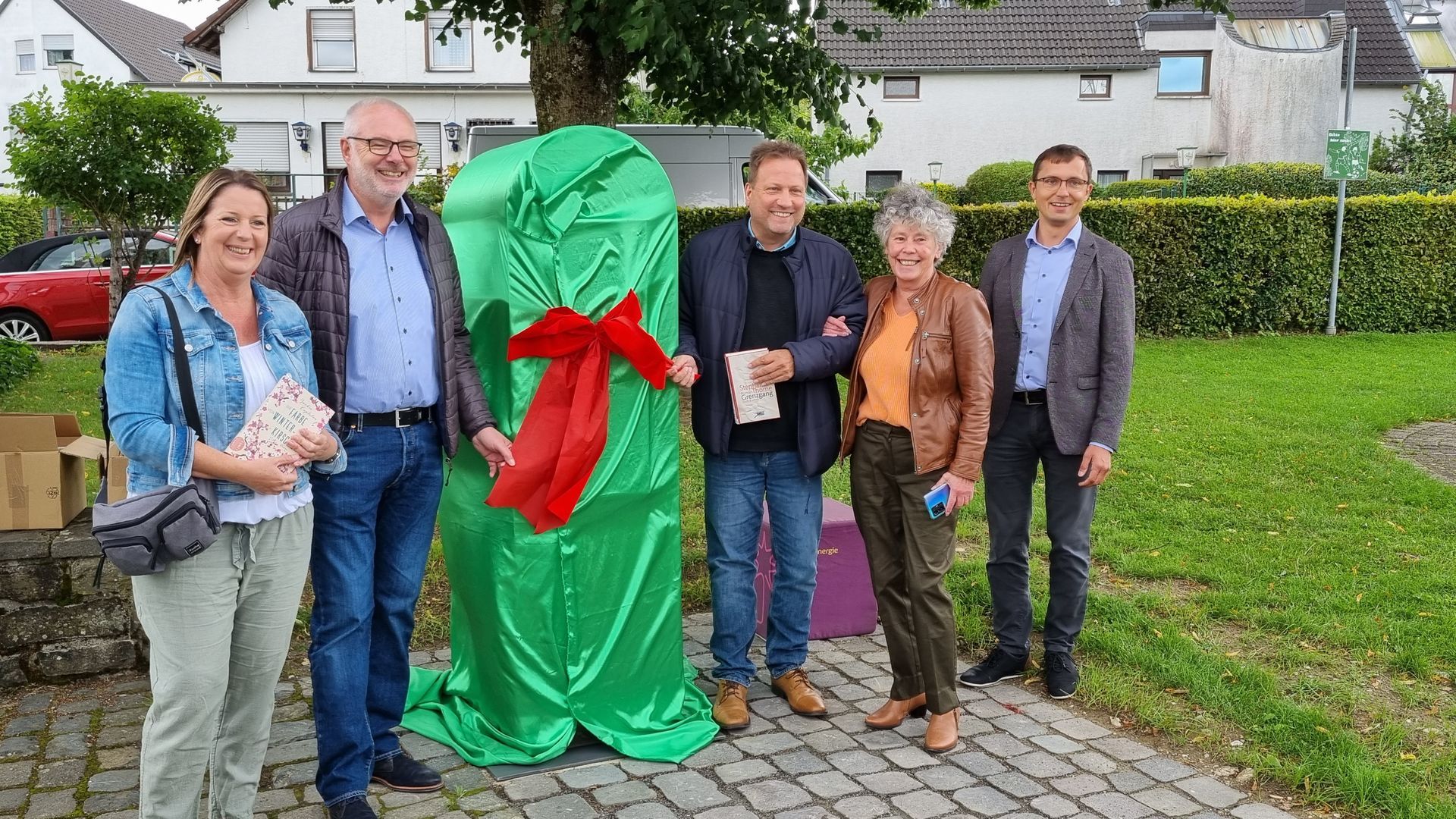 Am 8. August um 13:30 wurde der neue Bücherschrank auf dem Dorfplatz von Bürgermeister Lutz Wagner, Bürgervereinsvorstand Frank Klein und Thomas Krischik von der Westnetz eingeweiht. Der barrierefrei aufgestellte Bücherschrank wurde von der Westnetz gesponsort, die baulich notwendigen Maßnahmen wie Fundamentherstellung und Pflasterung wurden von der Stadt Königswinter koordiniert und durchgeführt. Zur Einweihung waren Bürger aus dem Dorf, Pressevertreter sowie die beiden ehrenamtlichen Paten Barbara Groetzner und Angelika Kaufmann des Bücherschrankes anwesend. Das Prinzip ist Tausch - wer Lesestoff benötigt, kann im Schrank schauen, ob dort etwas Interessantes zu finden ist. Wer Bücher zur Verfügung stellen möchte, findet sicher ein freies Plätzchen im Schrank. Für alle Fragen zur Nutzung des Schrankes stehen die beiden Paten Barbara Groetzner und Angelika Kaufmann zur Verfügung. Wir wünschen viel Spaß beim Lesen!