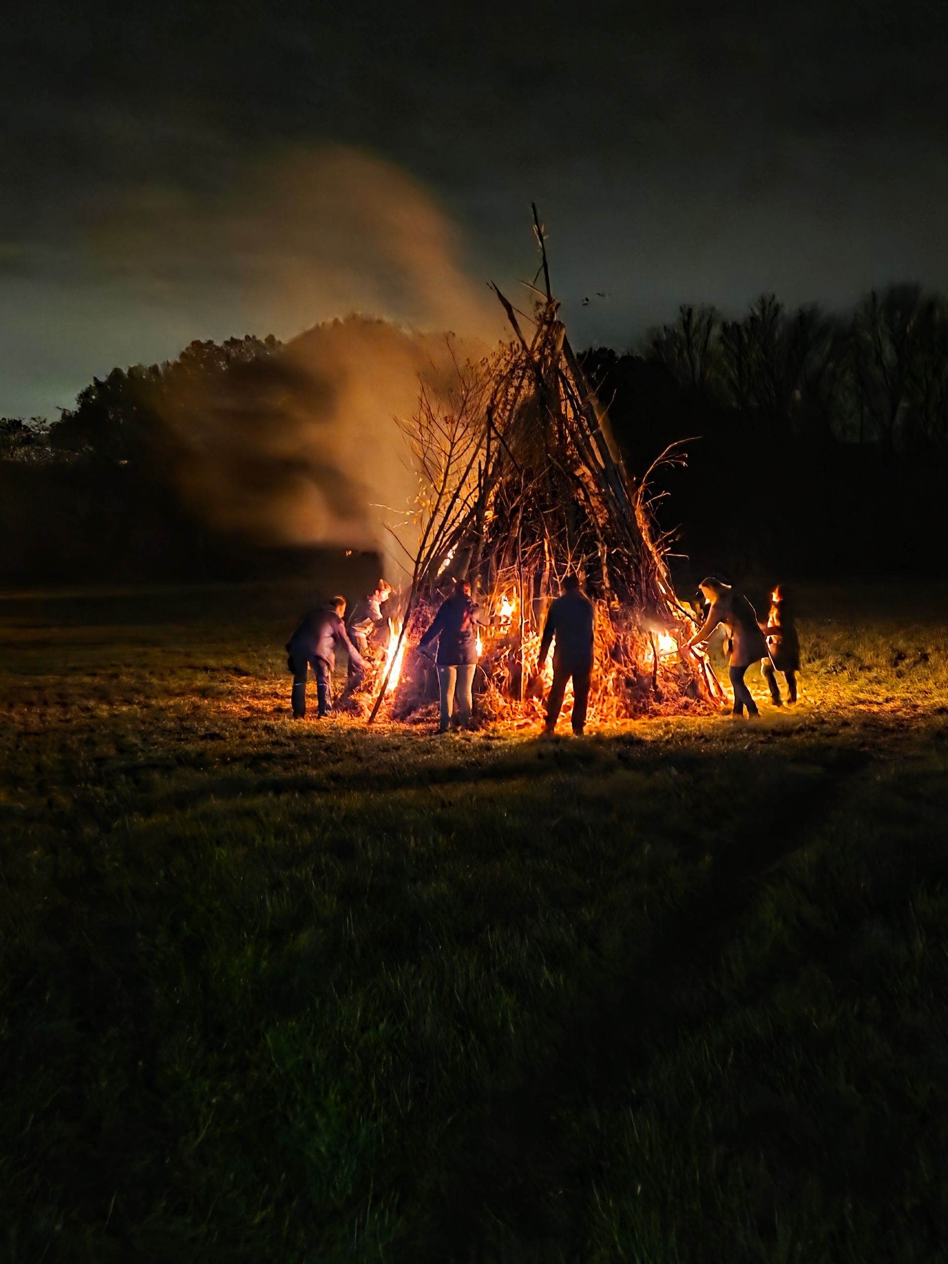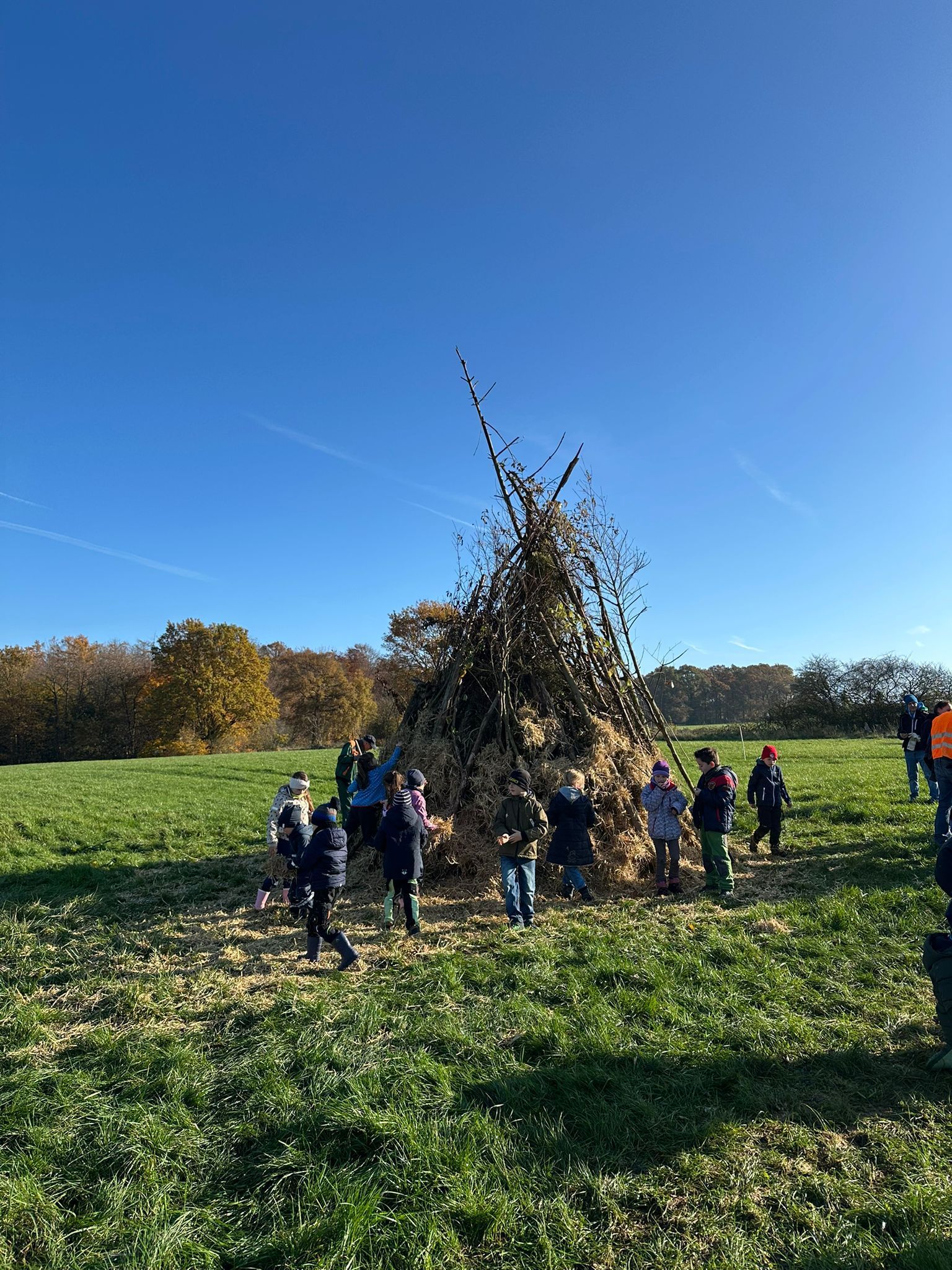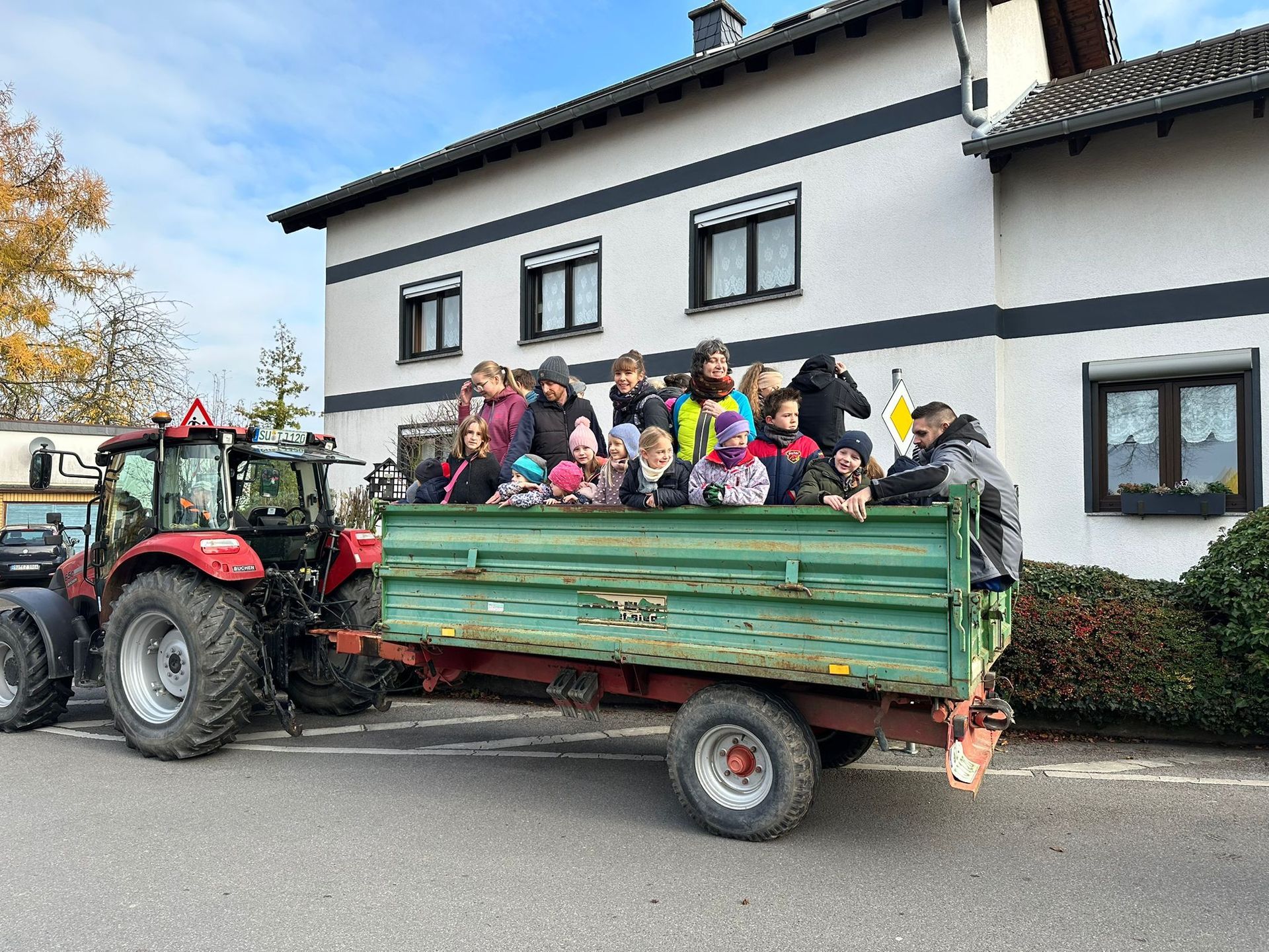 Um 10 Uhr morgens trafen sich die Kinder und sind gemeinsam auf Traktoren zum Holzsammeln aufgebrochen. Der Aufbau lief bei tollem November-Wetter reibungslos.